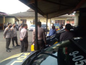 Dilanjutkan dengan pengecekan motor dan mobil dinas baik kelengkapan surat, kebersihan dan kondisi kendaraan