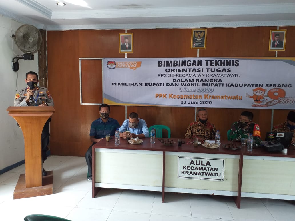 Ditempat yang sama, Kapolsek Kramatwatu Kompol R. Moch Sofian, SH., Menyampaikan semulanya Pilkada Kabupaten Serang ini di tunda karena adanya Pandemi Covid-19 dan dengan adanya Per KPU No.5 Tahun 2020 Pemilukada Kabupaten serang tetap dilaksanakan tentunya dengan memenuhi Protokol Kesehatan,”