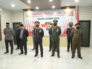 “Hari ini Polres Serang Kota bersama Forkompinda Kota Serang melaksanakan upacara hari Bhayangkara ke-74 secara virtual,”kata Kapolres Serang kota AKBP Yunus Hadith Pranoto, S.IK., M.Si.,kepada awak media usai kegiatan