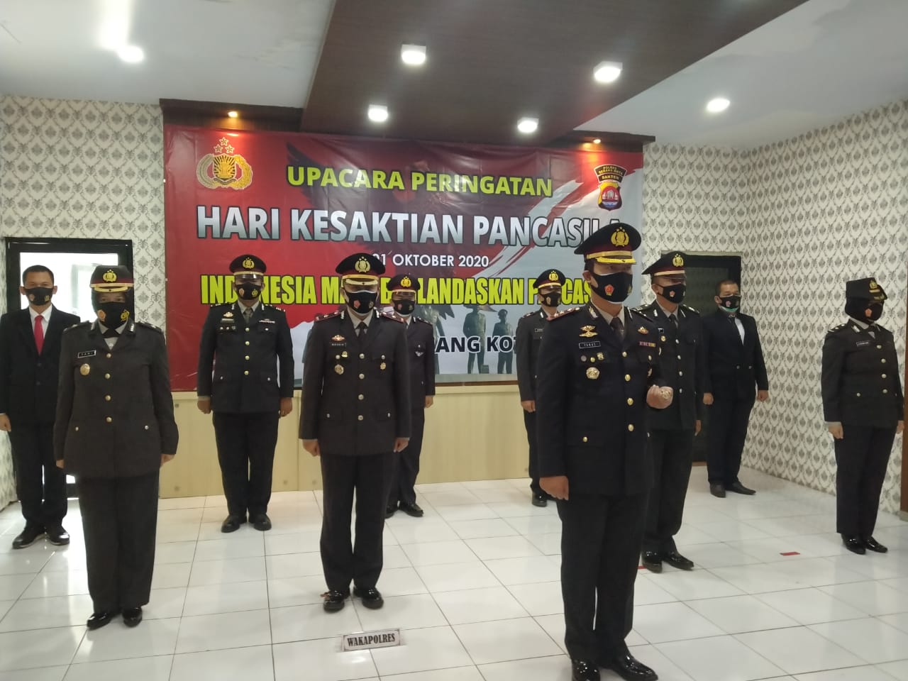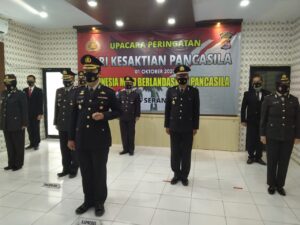 Polres Serang Kota Polda Banten melaksanakan upacara hari Kesaktian Pancasila secara virtual di Gedung Sanika Satyawada Polres Serang Kota dengan tema “Indonesia Maju Berlandaskan Pancasila”.
