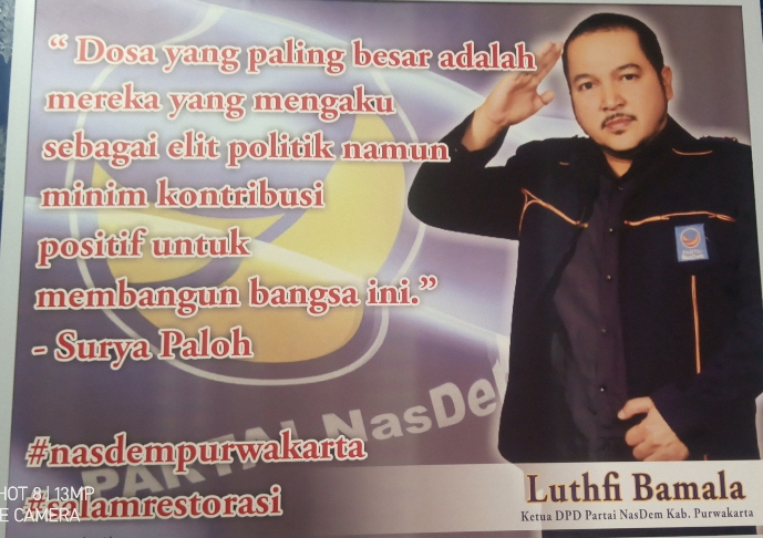 Dalam sambutan nya ketua Nasdem DPD kabupaten Purwakarta yaitu tiada lain ingin menciptakan restorasi perubahaan yang mana ingin membangun esensi di kabupaten Purwakarta lebih maju dan bersahaja dan tiada lain hanya ingin memberikan suatu perubahaan khususnya untuk seluruh negri tercinta ini berjuang membangun negri semboyan.Ucapnya.28/0/10/2020,