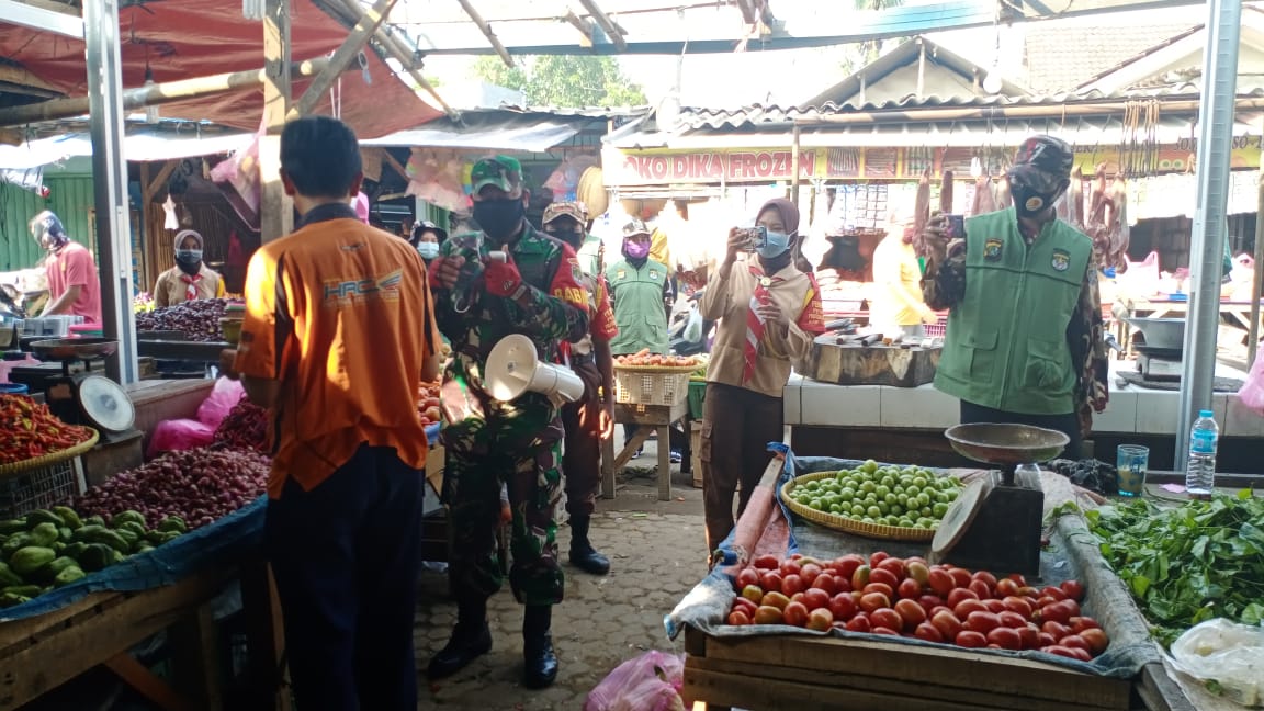 Penegakan Disiplin Mematuhi Protokol Kesehatan (PDMPK) Dilaksanakan Di Pasar Mutiara Garuda, Desa Kampung Melayu Timur, Kecamatan Teluknaga, Kabupaten Tangerang – Banten. Minggu (01/11/2020).