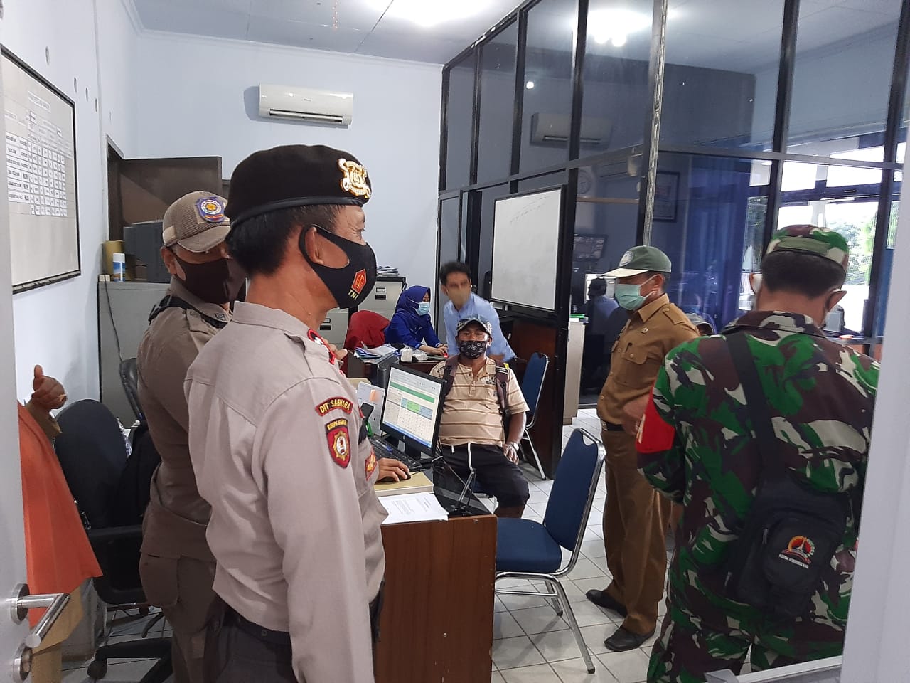 “Setelah kita cek ada beberapa pegawai di perkantoranyang tidak menggunakan masker serta pekerja bangunan kemudian kita memberikan teguran tertulis kepada pegawai dan pekerja bangunan tersebut” pungkasnya
