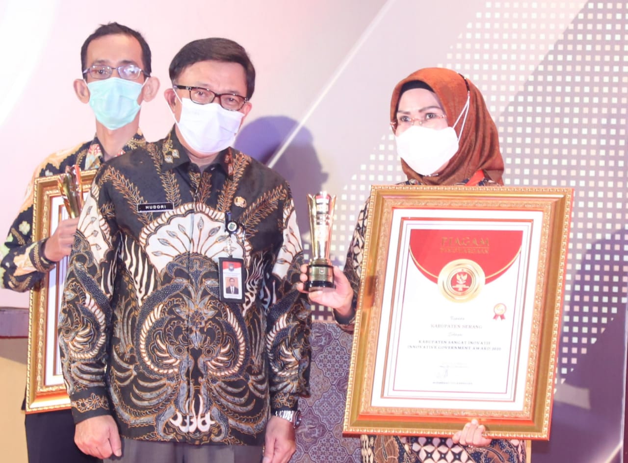 Infoxpos.com – Serang – Pemerintah Kabupaten Serang meraih anugerah Innovative Government Award (IGA) 2020 dari Kementerian Dalam Negeri (Kemendagri) dengan Kategori Kabupaten Sangat Inovatif. Penghargaan diserahkan Sekjen Kemendagri Muhammad Hudori serta diterima langsung Bupati Serang Ratu Tatu Chasanah di Hotel Sultan, Jakarta, Jumat (18/12/2020).