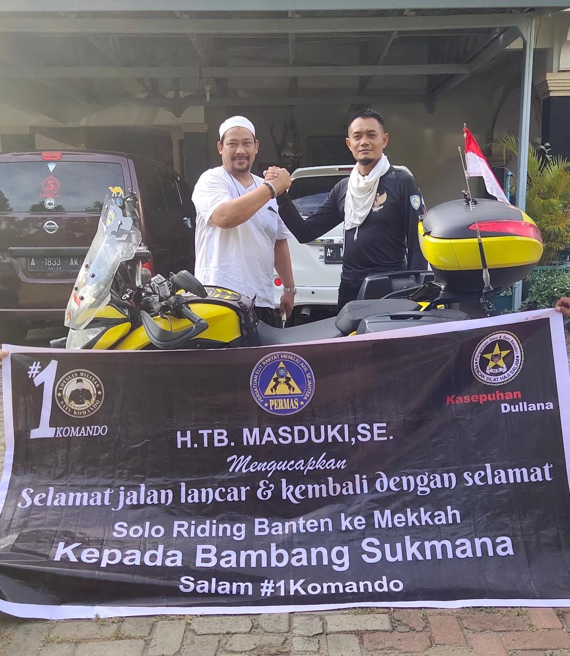 Infoxpos.com – SERANG | H.Tb.Masduki merupakan Tokoh dan Penggiat Pergerakan Moralitas Masyarakat Banten hal yang menarik dan baru pertama melepas Keberangkatan Bambang Sukmana ke Tanah Suci Makkah melalui Jalur darat mengendarai Motor atau Solo Riding, Bambang Sukmana memiliki Darah Banten walau berkarir di Cimahi Jabar dan bagian dari kader Militan Pergerakan Masyarakat Banten (PERMAS).