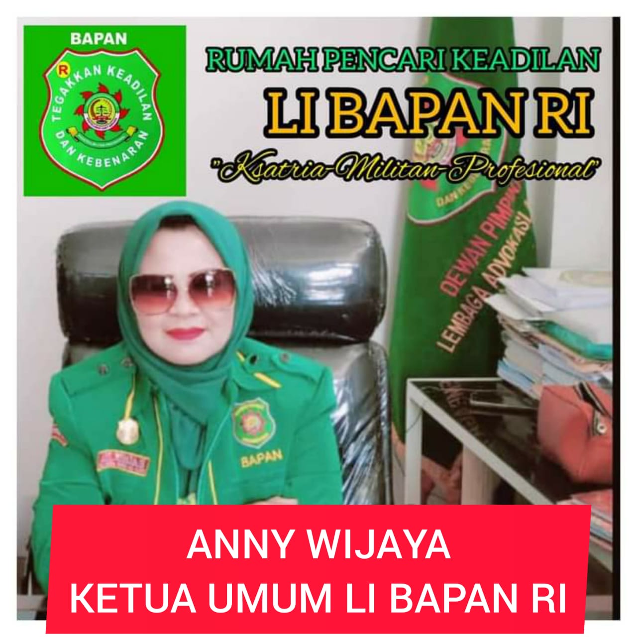Lanjut Ketua Umum Lembaga Investigasi Badan Advoksi Penyelamat Aset Negara ( LI BAPAN ), Anny Wijaya kepada seluruh Anggota pengurus BAPAN di seluruh Indonesia ” Jangan pernah kau takut untuk melangkah, berjuang, sekalipun apa yang kamu lakukan seorang diri, selama niat dan hati kamu tulus untuk Bangsa Negara dan Masyarakat pencari keadilan jangan pernah kau ragu untuk bergerak bertindak, Ketua Umum kamu akan selalu bersama’mu dan bertanggung jawab setiap langkah mu, bergerak bertindak lawan yang melawan, laporkan, serta selalu berkoordinasi ke jajaran TNI, Polri, Kejaksaan, Mahkamah Agung, KPK jika terjadi penyimpangan, penyalahgunaan wewenang dan kekuasaan oleh Oknum yang berbuat curang. Bergerak dan bertindak dengan tetap dalam satu komando dan norma-norma yang telah di gariskan di Lembaga BAPAN jangan lemah dan putus asa.