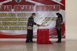 Infoxpost.com – Tulang Bawang –Bupati Tulangbawang Dr. (cand) Hj. Winarti., SE., MH Menyerahkan Secara Simbolis Dana Desa Tahap I (40%) , Bantuan Lanngsung Tunai Dana Desa (BLT DD) Kepada Keluarga Penerima Manfaat dan di 33 ( tiga puluh tiga ) Kampung Bulan Januari Tahun 2021dilanjutkan peninjauan lokasi Tugu dan taman dikampung tri tunggal jaya kecamatan Banjar Agung.