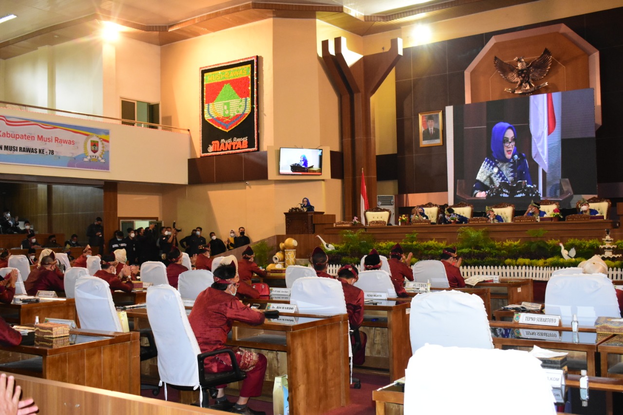 InfoXpos.com – Musi Rawas – Paripurna istimewa Dewan Perwakilan Rakyat Daerah (DPRD) Kabupaten Musi Rawas, dalam rangka hari jadi Kabupaten Musi Rawas yang Ke-78 tahun. Acara tersebut digelar di gedung paripurna DPRD Musi Rawas, Komplek Agropolitan Center Kecamatan Muara Beliti, pada Selasa (20/04/2021).