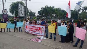 “Wartawan adalah pejuang keterbukaan informasi publik yang dilindungi oleh Undang undang Pers No 40 Tahun 1999, maka hentikan kekerasan terhadap wartawan,” ucap Angga dengan nada lantang.