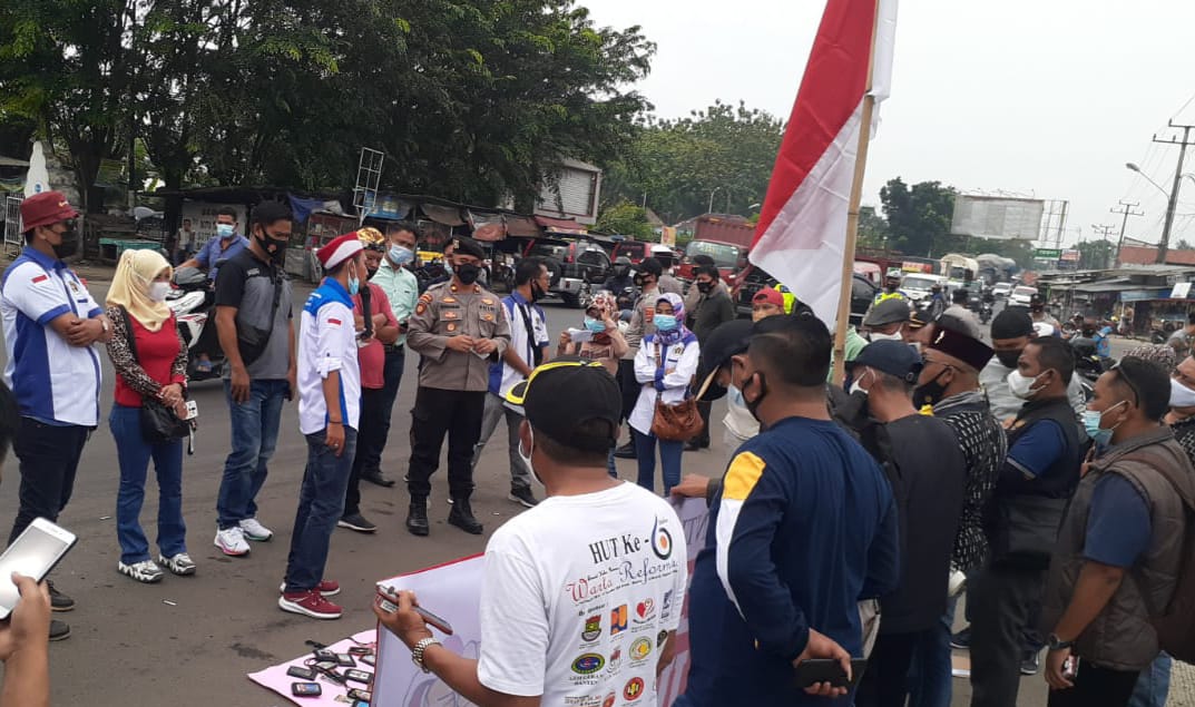 Seluruh aksi berjalan dengan tertib dengan menerapkan protokol kesehatan dan dalam pengawalan personil Polres Serang. (Aji)