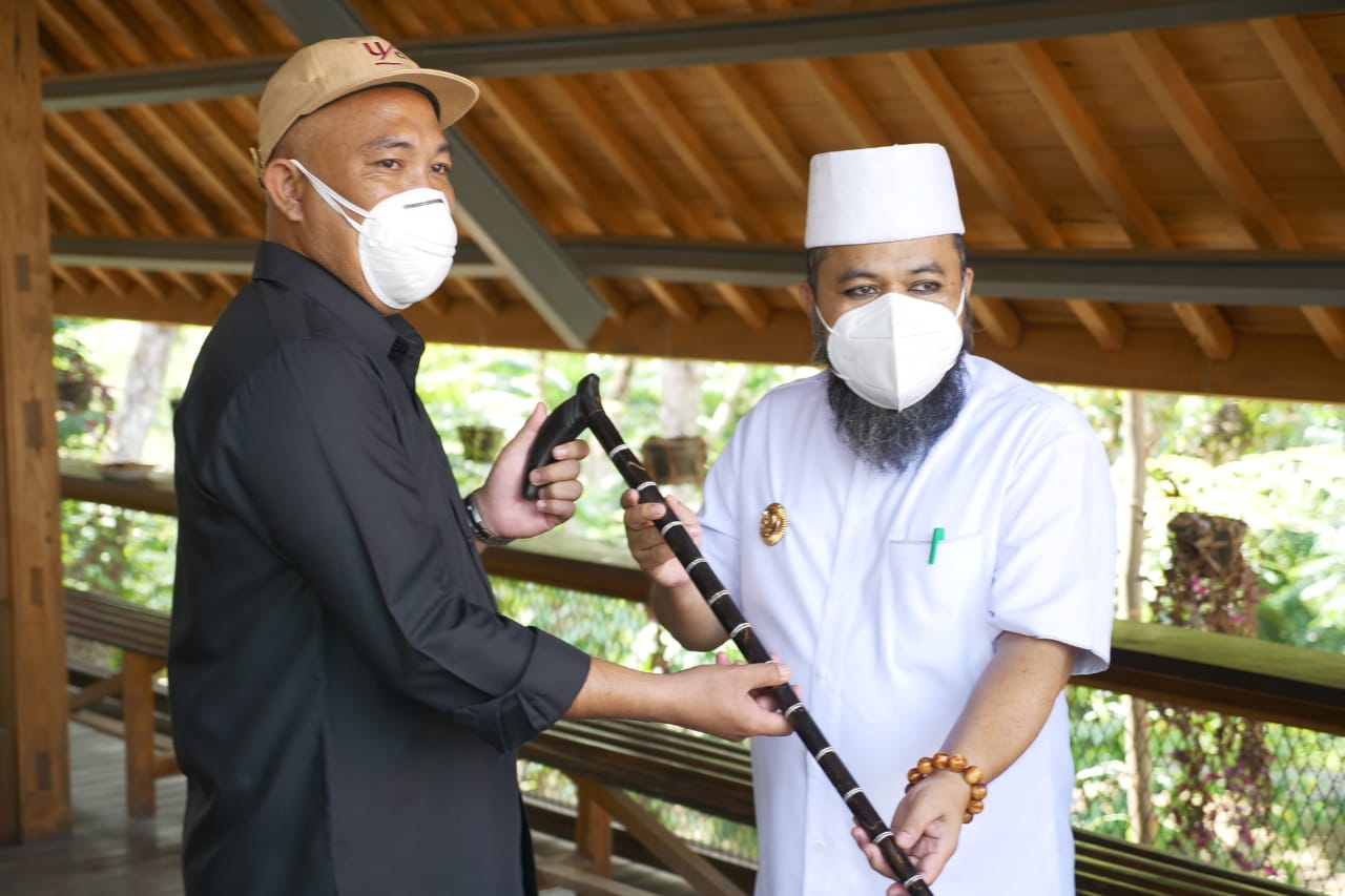 Walikota Bengkulu di akhir kegiatan memberikan tongkat yang digunakannya sehari-hari sebagai cinderamata kepada Bupati Tulang Bawang Barat. “Tongkat ini asli dari bahan tanduk. Ini Saya pakai bukan karena ada masalah di kaki, tapi karena ini adalah salah satu Sunnah Rasul.”, pesannya (ADV/ Gitaramanda)