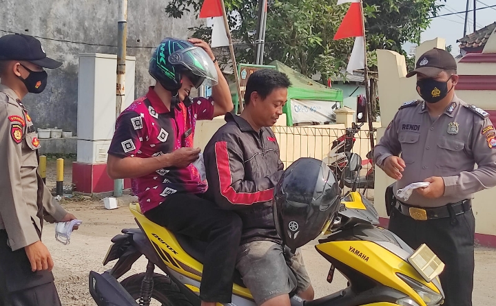infoxpos.com – KOTA SERANG- Meski Kota Serang masuk ke dalam zona kuning penyebaran Covid-19 dan berada di level III PPKM Jawa – Bali tak menyurutkan petugas dari Kepolisian Sektor Kasemen Polres Serang Kota Polda Banten untuk terus memberikan himbauan protokol kesehatan kepada masyarakat.