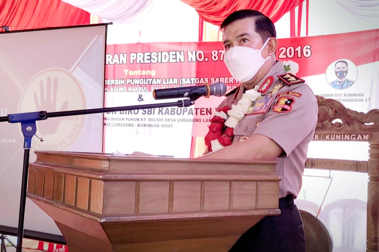 Infoxpos.com – Kuningan – Sahabat Bhayangkara Indonesia (SBI) melaksanakan kegiatan sosialisasi Peraturan Presiden (Perpres) Nomor 87 tahun 2012 tentang Sapu Bersih Pungutan Liar (Saber Pungli) yang dirangkaikan dengan peresmian Kantor Biro Perwakilan SBI di Kabupaten Kuningan, pada Sabtu, 18 September 2021, bertempat di Desa Luragunglandeuh, Kecamatan Luragung, Kabupaten Kuningan, Provinsi Jawa Barat. Hadir sebagai keynote speaker, Sekretaris Satgas Pusat Saber Pungli, Irjen Pol Dr. H. Agung Makbul, SH, MH, yang memberikan pemaparan tentang Perpres Nomor 87 tahun 2016 dan program implementasinya dalam rangka memberantas praktek pungutan liar (pungli) di jajaran birokrasi dan aparat pemerintahan.