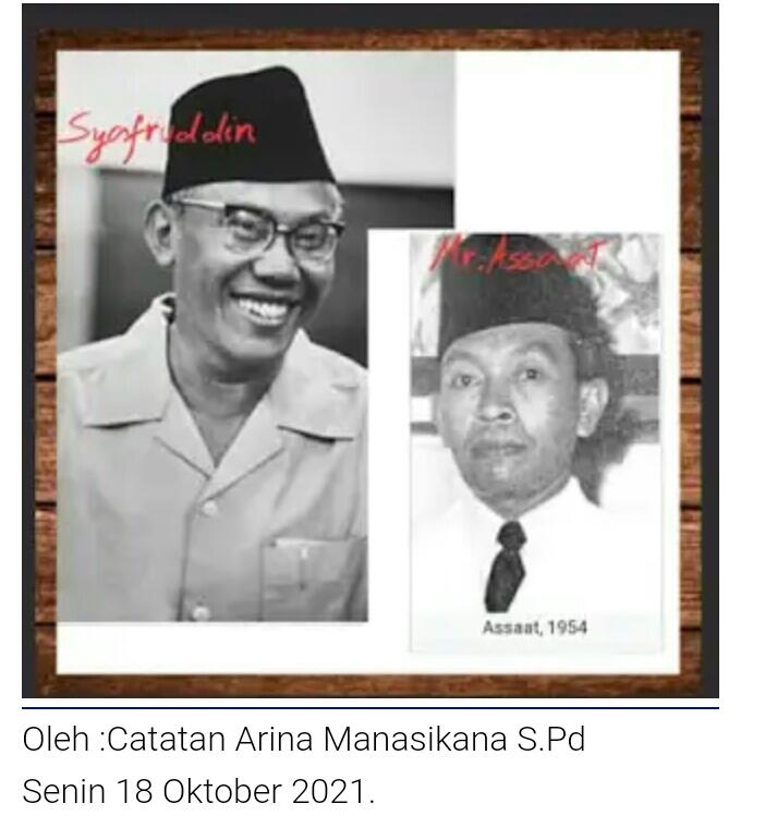 (2).Mr .Assaat. Pria kelahiran Sumatera Barat. 18 September 1904.Yang menandatanggani pendirian Universitas Gajah Mada. Di Yogyakarta. Dia memimpin RI selama 9 bulan mulai dari 27 Desember 1949.Sampai 15 Agustus 1950.Setelah perjanjian Meja Bundar 27 Desember 1949. Assaat diamanatkan sebagai pelaksana tugas Peresiden RI. Di Yogyakarta. Karena terbentuknya Republik Indonesia Serikat (RIS).Jabatanya sebagai ketua KNPI dan Pejabat Presiden RI berakhir. Karena pada bulan Agustus 1950.Negara bagian RIS melabur dalam Negara Kesatuan Republik Indonesia.