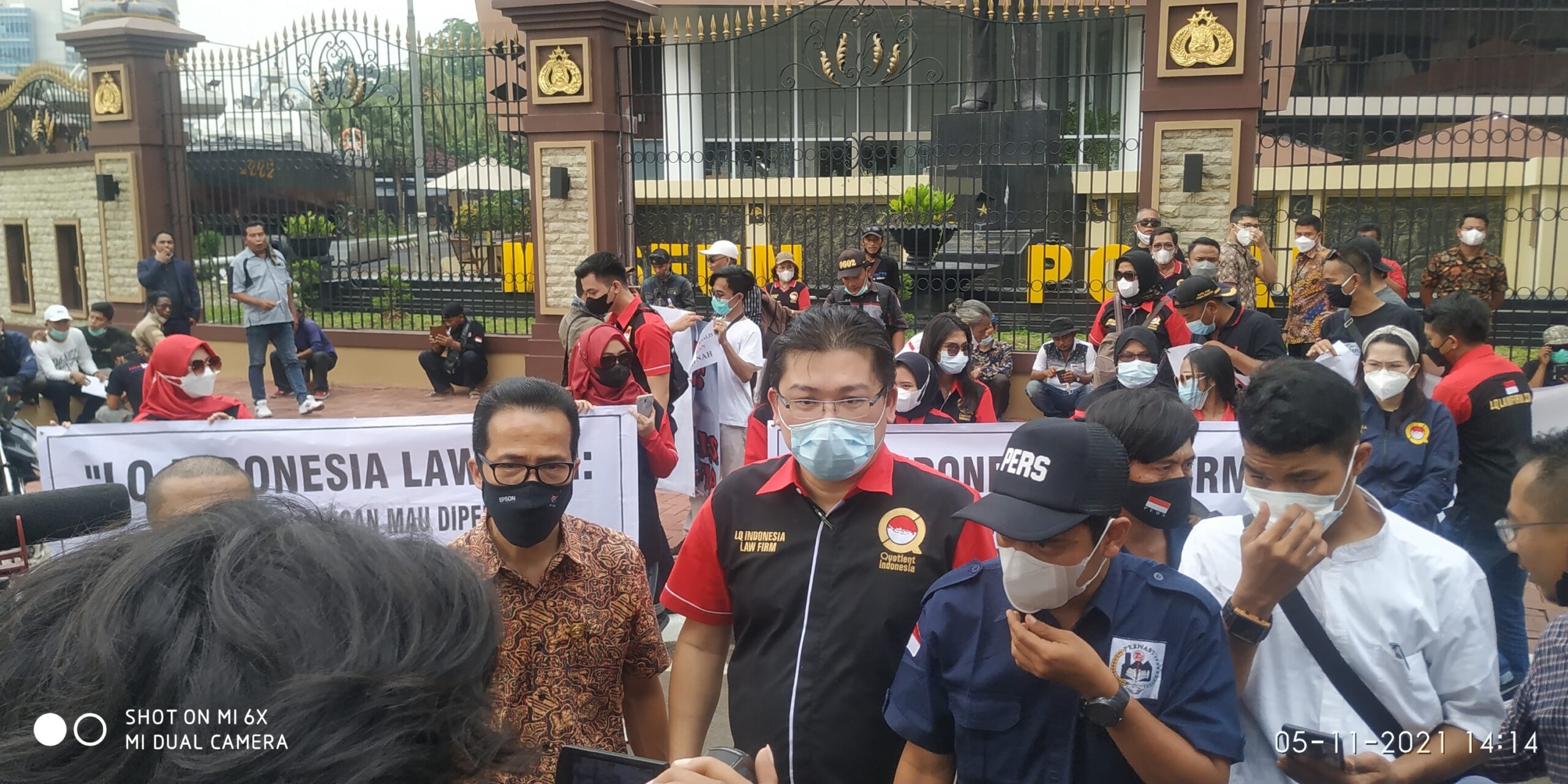 Infoxpos.com – JAKARTA – Puluhan Wartawan dari Serang, Tangerang, Jakarta, dan Bekasi bersama Advokat yang bergabung di LQ Indonesia Lawfirm menggelar aksi damai di depan Mabes Polri, Jumat, 05 November 2021.