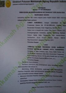 Infoxpos.com – Tangerang – Berawal Keberatan atau tidak puas atas putusan Komisi Informasi (KI) serang-Banten, kecamatan Karawaci melalui kuasanya Kabag Hukum Sekda Kota Tangerang mengajukan Banding ke PTUN, dalam prosesnya di PTUN serang-Banten amar putusan menguatkan putusan Komisi Informasi. Tidak puas juga dengan putusan PTUN Serang Kecamatan Karawaci melalui kuasanya, Kabag Hukum mengajukan Kasasi ke Mahkama Agung dalam perkara Nomor 171 K/KI/TUN/2021 tertanggal 2 Juni 2021.