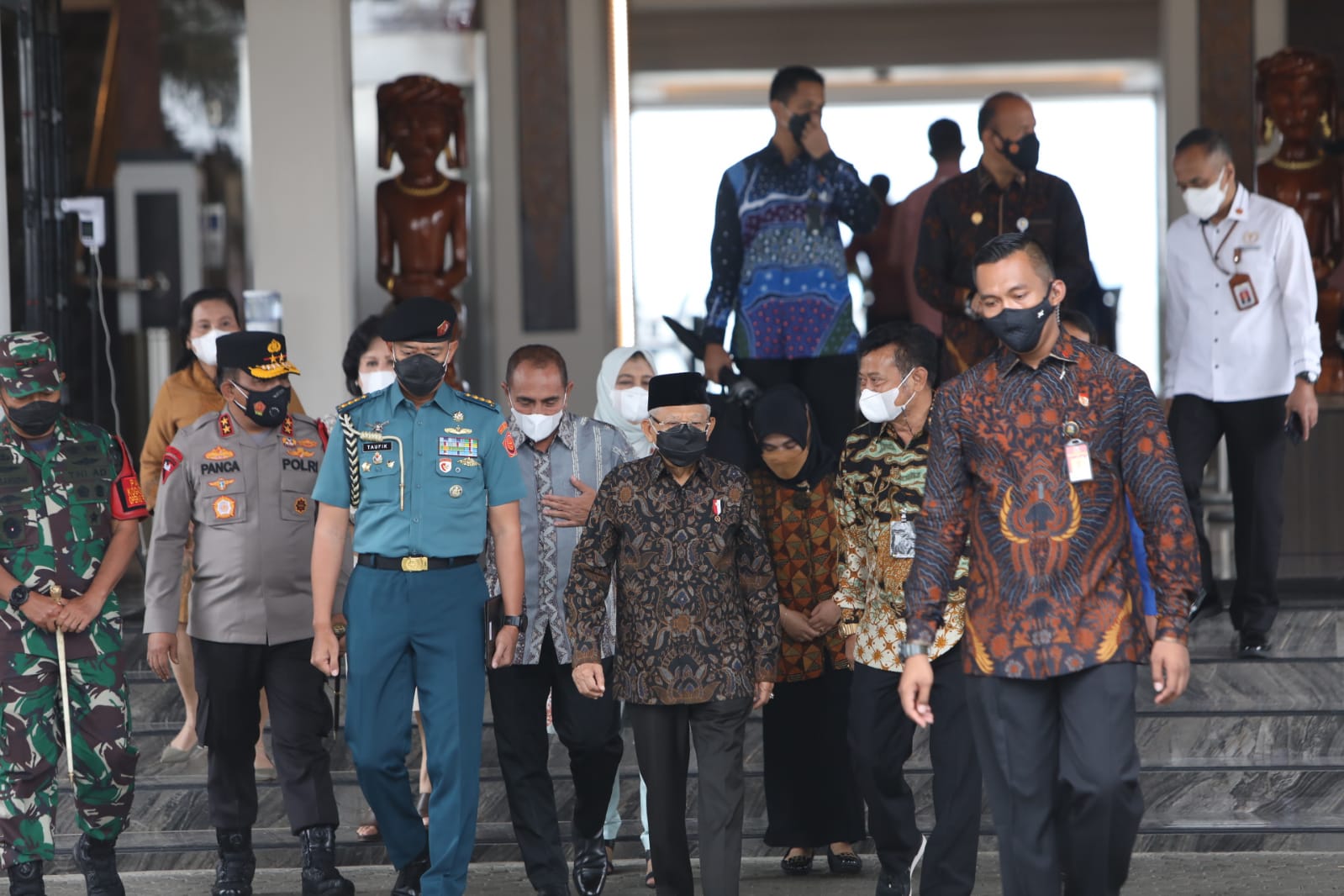 Infoxpos.com – PARAPAT – Kapolda Sumut Irjen Pol RZ Panca Putra Simanjuntak bersama Pangdam I/BB Mayjen TNI Hasanuddin mendampingi Wakil Presiden RI KH Ma’ruf Amin dalam kunjungan kerja di Kabupaten Simalungun, Jumat (10/12).