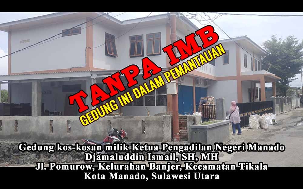 Infoxpos.com – Manado – Bangunan gedung kos-kosan milik Ketua PN Manado, Djamaluddin, SH, MH yang terletak di Jl. Pomurow, Kelurahan Banjer, Kecamatan Tikala, Manado, Sulawesi Utara diduga tidak mengantongi Ijin Mendirikan Bangunan (IMB) [1]. Terkait hal tersebut, Alumni PPRA-48 Lemhannas RI tahun 2012, Wilson Lalengke, S.Pd, M.Sc, MA angkat bicara. Lalengke mengatakan, jika benar gedung kos-kosan yang sedang dalam penyelesaian pembangunannya itu tidak memiliki IMB, maka seharusnya dihentikan proses pembangunannya sampai dengan ijin mendirikan bangunan itu diterbitkan pihak terkait.