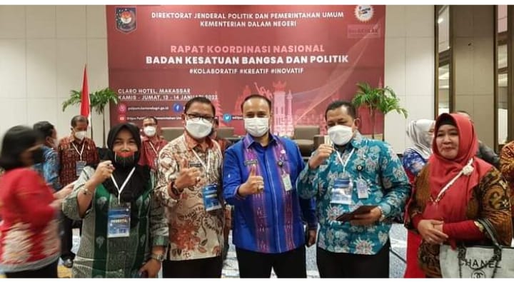 Infoxpos.com – Nias Barat – Kepala Badan Kesatuan Bangsa dan Politik Kabupaten Nias Barat, Sozisokhi Hia, SH, MM., menghadiri Rapat Koordinasi Nasional (RAKORNAS) Badan Kesatuan Bangsa dan Politik yang dilaksanakan di Claro Hotel Makassar (Jl. A.P. Pettarani No. 03 Kota Makassar Provinsi Sulawesi Selatan selama 2 hari yaitu tanggal 13 dan 14 Januari 2022). Dilansir dari Diskominfo Nisbar (17/01/2022).