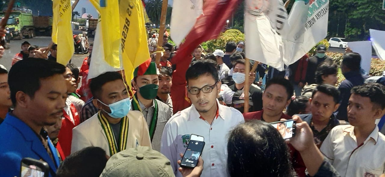 Masa aksi membawa tuntutan “Menolak kenaikan harga BBM, menolak kenaikan harga bahan pokok, dan menolak kenaikan PPN”.