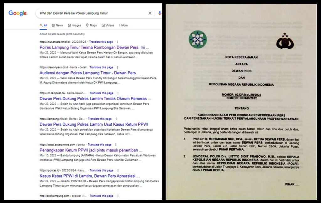 Foto: Pemberitaan masif kunjungan Dewan Pers ke Polda Lampung dan ke Polres Lampung Timur, dan MOU dengan Kapolri