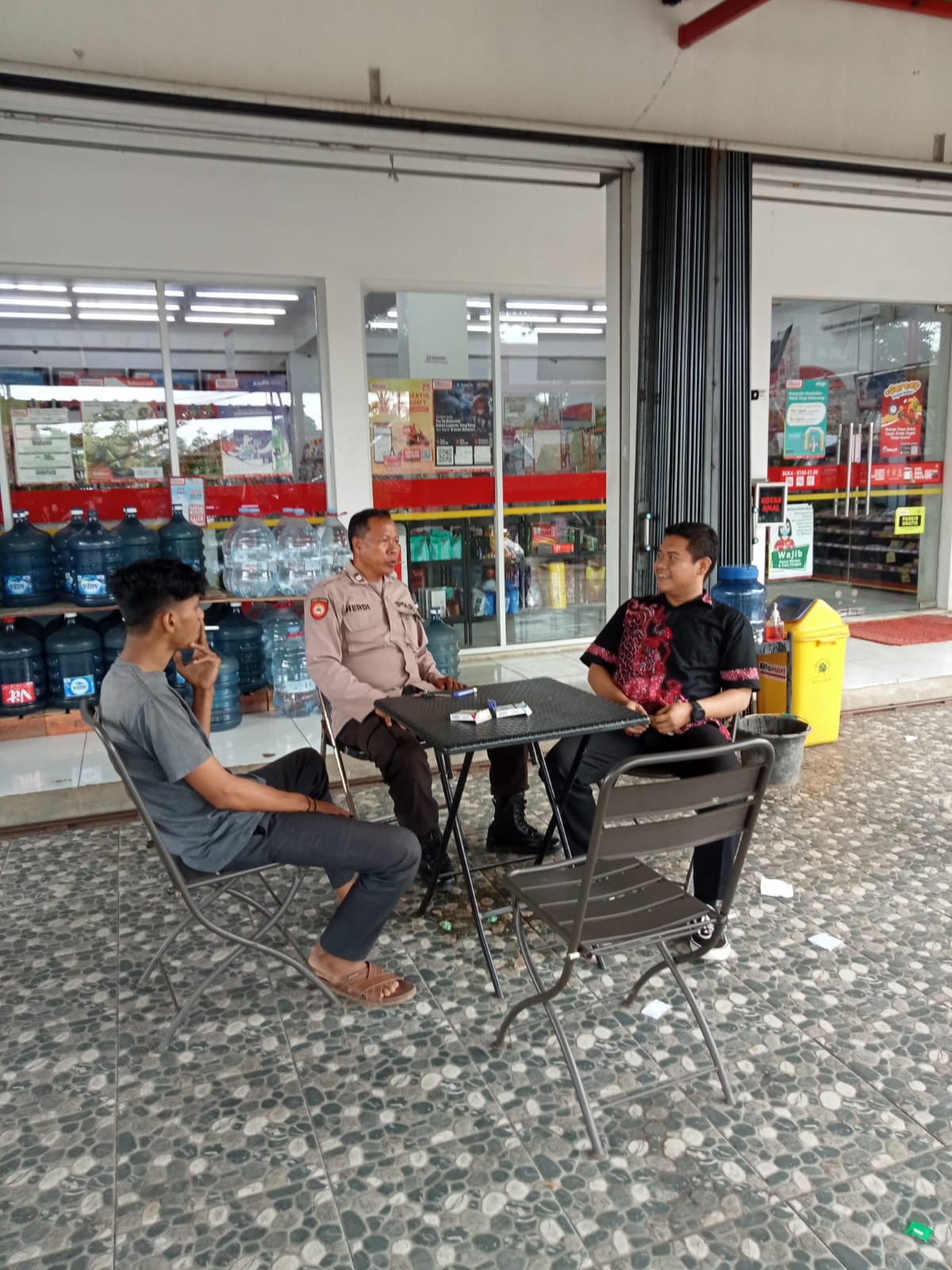 POLRESTA SERKOT | Personil Polsek Pabuaran Polresta Serkot Polda Banten Aiptu Herdi Rosidin bersama Anggota melaksanakan Patroli dialogis dengan mendatangi Alfamart maupun indomart pastikan aman memberikan himbauan Kamtibmas serta mengingatkan kembali himbauan dan edukasi protokol kesehatan kepada pelayan untuk selalu menerapkan 5 M Protokol Kesehatan.Kamis,(15/07/2022)