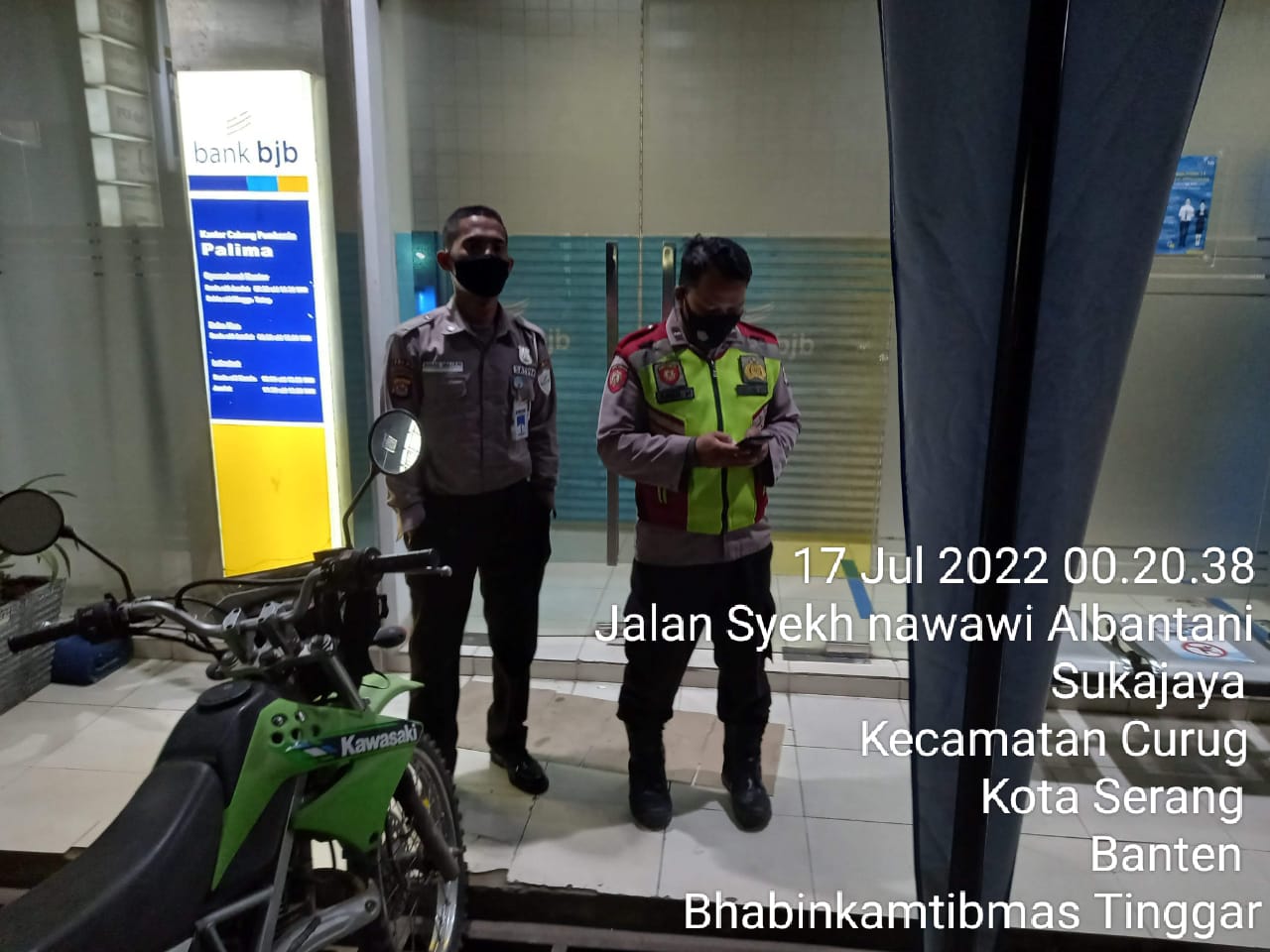 Dalam giat ini, anggota Polsek Curug Polresta Serkot Aipda Andi dan Aipda Sudarno memberi arahan dan pesan-pesan Kamtibmas kepada Security Bank serta mengingatkan tentang Prokes dan kesiap siagaan saat bertugas antisipasi kejahatan.