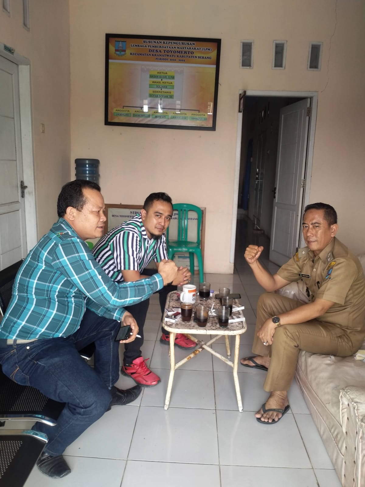 Untuk mewujutkan situasi yang aman dan kondisif di wilayah hukum Polsek Kramatwatu, panit opsnal polsek Kramatwatu Iptu Chaerul Chaniago dan Anggotanya Bripka Ibrahim sambang Kepala Desa untuk melakukan silaturahmi sekaligus penggalangan terkait dengan perkembangan situasi di wilayah Desa Toyomerto Kec. Kramatwatu kabupaten serang.