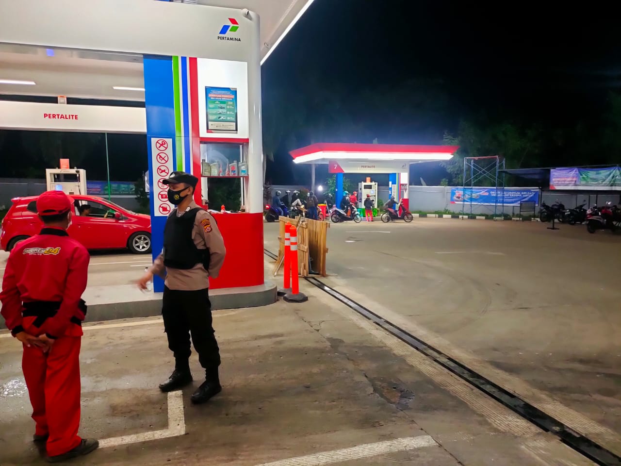 POLRESTA SERKOT |Anggota Patroli Polsek Baros Bripka Dadi Saputra bersama anggota lain nya memberi Himbauan Kamtibmas Kepada Karyawan SPBU Kp. Sawah Minggu, (17/07/2022) malam.