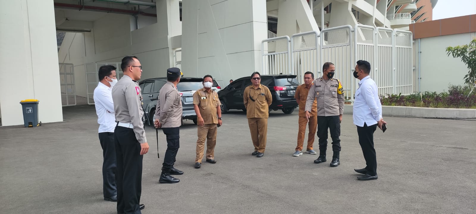 POLRESTA SERKOT-Kapolresta Serang Kota Kombespol Nugroho Arianto, beserta Kabag OPS Kompol ASARI S.IP, MH, Kasat Lantas Kompol Try Wilarno, dan Kasat Intel AKP Nasir Eming, SH mengunjungi Banten Internasional Stadium (BIS) untuk mengecek kesiapan stadion dan penyelenggara kompetisi Liga 1 23 Juli 2022 mendatang di BIS, Senin.(18/07/22).