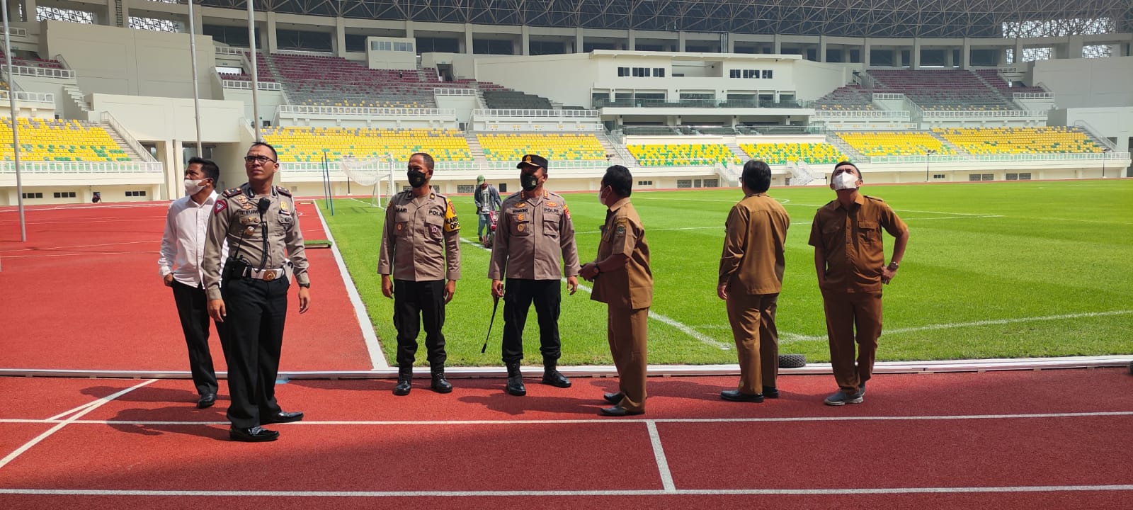 POLRESTA SERKOT-Kapolresta Serang Kota Kombespol Nugroho Arianto beserta Kabag OPS Kompol ASARI S.IP, MH, Kasat Lantas Kompol Try Wilarno, dan Kasat Intel AKP Nasir Eming, mengunjungi Banten Internasional Stadium (BIS) untuk mengecek kesiapan stadion dan penyelenggara kompetisi Liga 1 23 Juli 2022 mendatang di BIS, Senin.(18/07/22).