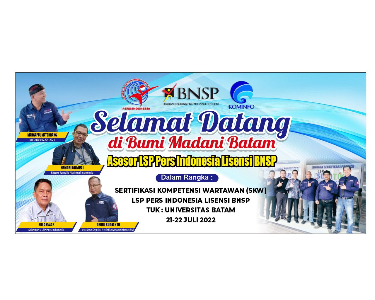 Infoxpos.com – Jakarta – Setelah sukses di Kota Surabaya, Kabupaten Tulungagung, dan Kota Pekanbaru, Lembaga Sertifikasi Profesi Pers Indonesia kini merambah Kota Batam, Provinsi Kepulauan Riau. Sertifikasi Kompetensi Wartawan ( SKW ) di Kota Batam akan berlangsung selama dua hari Tempat Uji Kompetensi (TUK) Universitas Batam pada 21 dan 22 Juli 2022.