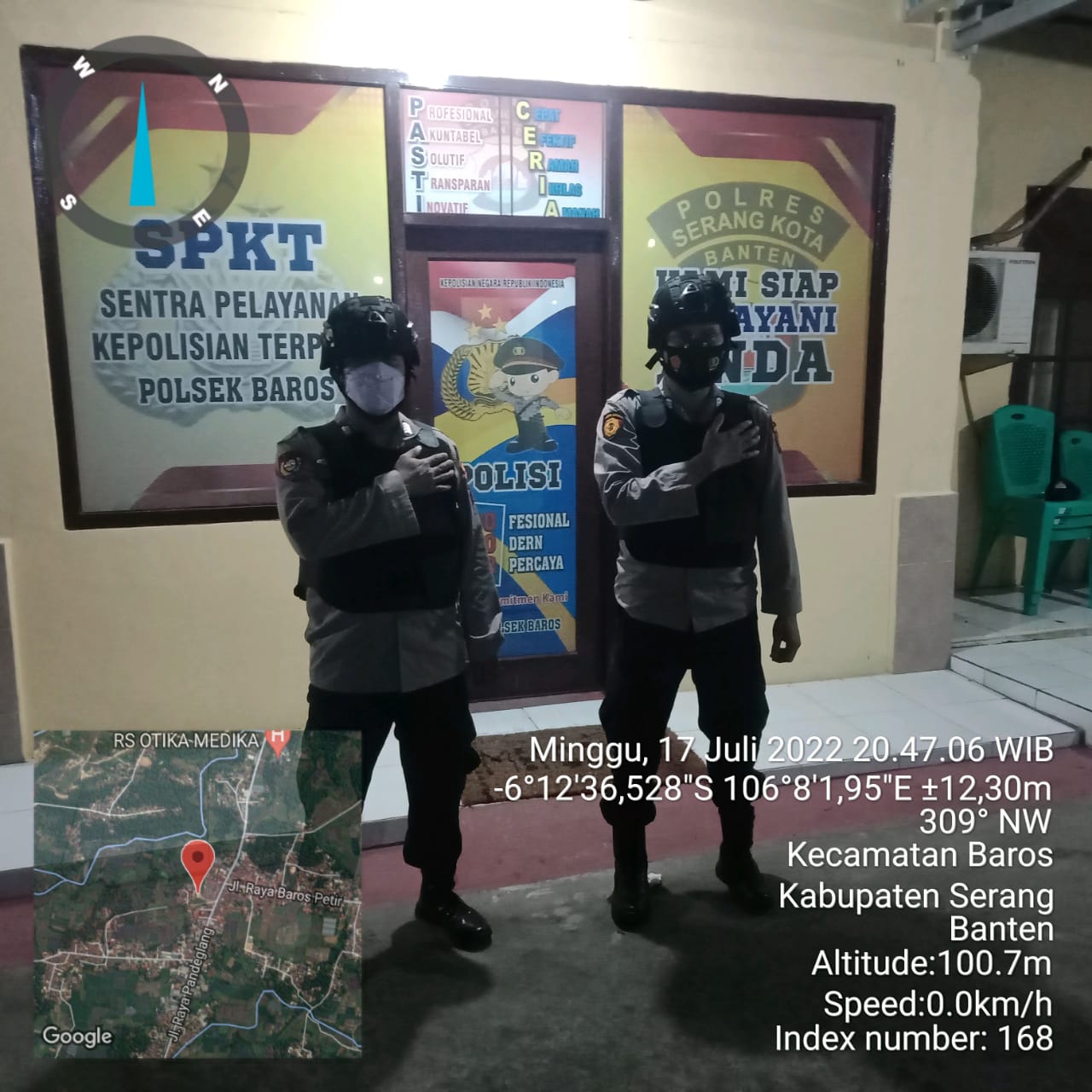 POLRESTA SERKOT | Personil Polsek Baros Polresta Serkot Polda Banten melaksanakan Sistem Pengamanan Markas Komando (Sispam Mako), Minggu (17/7/2022) malam.