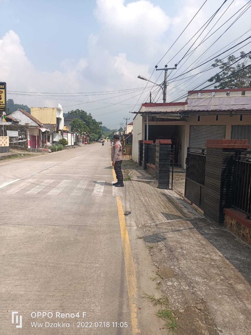 Kegiatan Anggota Polsek Pabuaran Polresta Serkot,dengan melaksanakan pengaturan arus lalu lintas supaya lancar serta membantu masyarakat yang ingin menyebrang jalan.