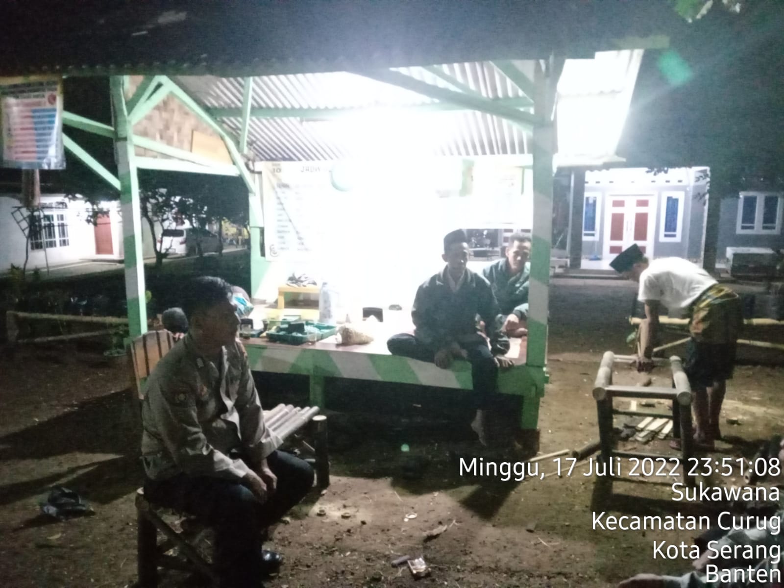 POLRESTA SERKOT_ Personel Polsek Curug Polresta Serkot Polda Banten melalui Bhabinkamtibmas Kel Sukawana mengajak untuk menggiatkan secara intensif Poskamling dan memelihara Kamtibmas kegiatan dilaksanakan pada Senin(18/07/22)