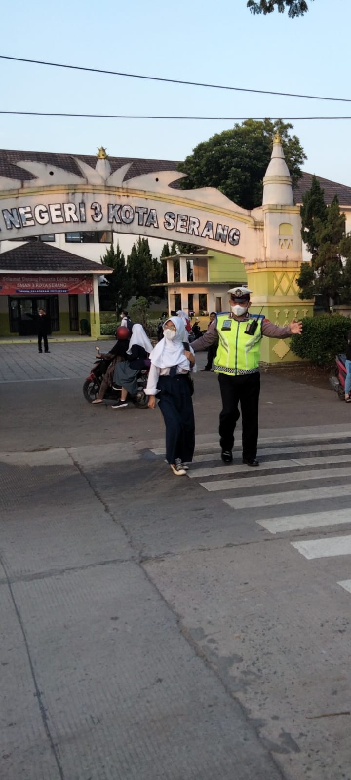 Polresta Serkot| Anggota Lalu lintas Polsek Taktakan Polresta Serang Kota Polda Banten melaksanakan pengaturan di depan SMA 3 Kota Serang, ini ditunjukkan bahwa aktivitas masyarakat pagi ini di Jalan menunjukkan peningkatan yang signifikan akan ramainya arus lalulintas.