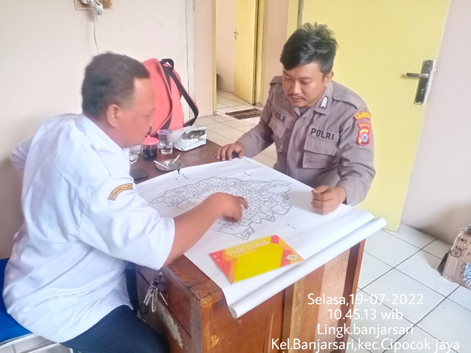 Kegiatan tersebut bertujuan Upaya mencegah gangguan kamtibmas di lingkungan masyarakat agar situasi tetap aman dan kondusif, Bripka Yudi melaksanakan kegiatan sambang sekaligus Bersilaturahmi mengecek denah luas kelurahan Banjarsari.