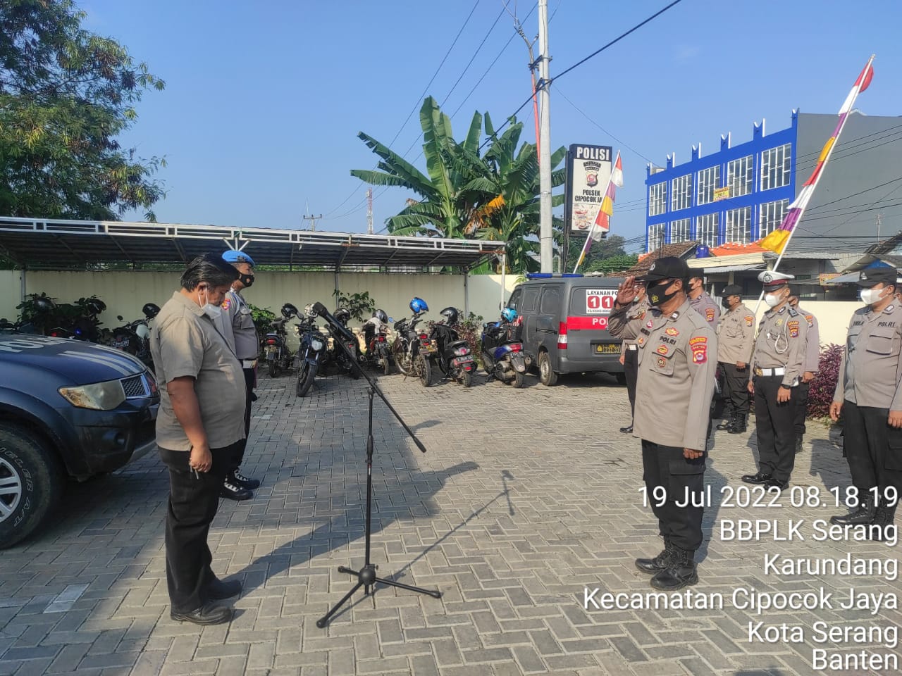 POLRESTA SERKOT-Sudah menjadi kewajiban bagi setiap personel POLRI, sebelum melaksanakan rutinitas tugas pelayanan masyarakat, selalu di awali dengan kegiatan apel pagi sebagai sarana penyampaian arahan maupun atensi pimpinan dengan tetap menerapkan disiplin protokol kesehatan seperti Pagi ini di Pimpin oleh Kanit Intelkam Polsek Cipocok jaya Polresta Serkot Akp.Bambang