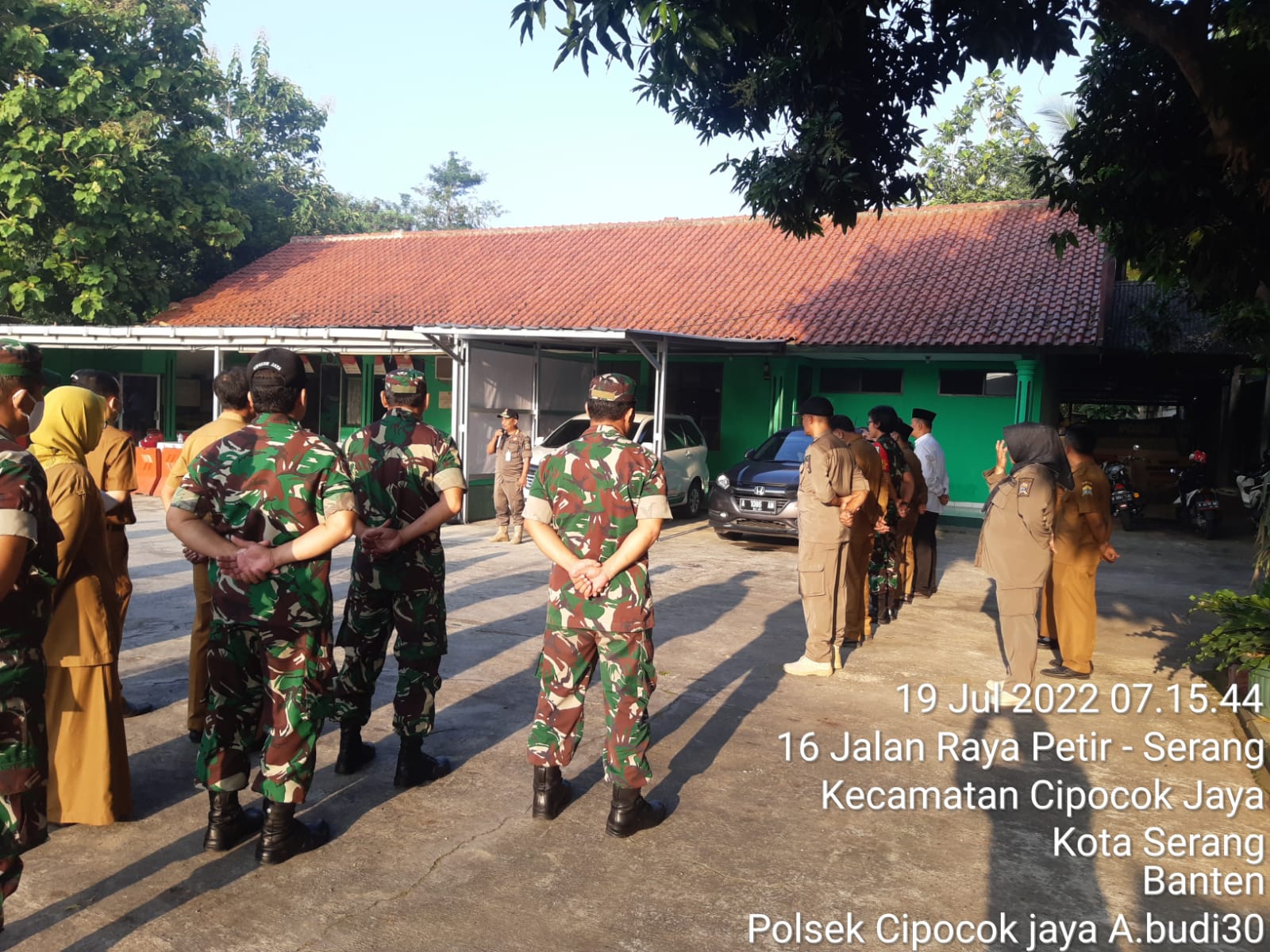 Hadir dalam Apel bersama pak Camat kecamatan cipocok jaya,Kapolsek Dan Koramil Cipocok jaya Serta Para Lurah yang berada di tingkat Kecamatan Cipocok jaya,kegaiatan apel bersama ini sudah dilaksanakan sejak kepemimpinan Kecamatan Cipocok berdiri tujuanya menjaga silaturahmi antar pimpinan agar solid menjaga situasi Kamtibmas yang kondusif di Kec. Cipocok Jaya.