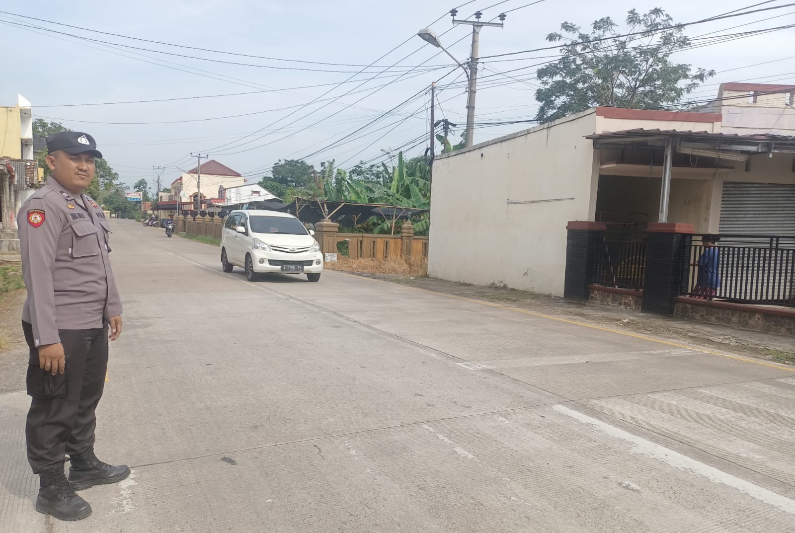 Kegiatan Anggota Polsek Pabuaran Polresta Serkot,dengan melaksanakan pengaturan arus lalu lintas supaya lancar serta membantu masyarakat yang ingin menyebrang jalan.