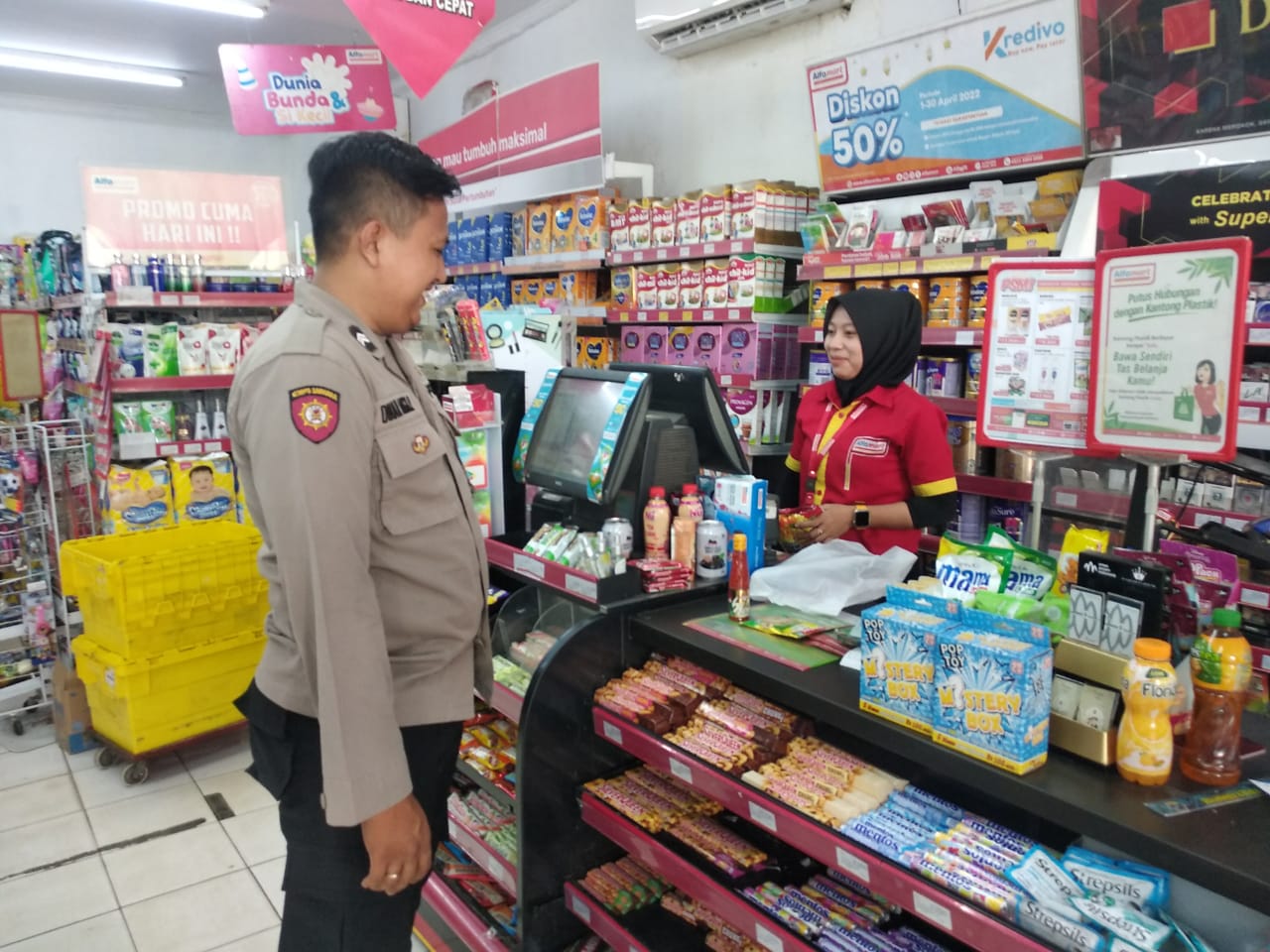 “Dalam kegiatan sambang Kami akan selalu mengingatkan dan terus menghimbau kepada pegawai toko Alfamart untuk selalu waspada terhadap tindak kejahatan seperti 3C di sekitar toko, awasi setiap pergerakan melalui CCTV serta tetap mematuhi Protokol Kesehatan guna mencegah penyebaran Covid-19 dengan menerapkan 5 M” Tuturnya.