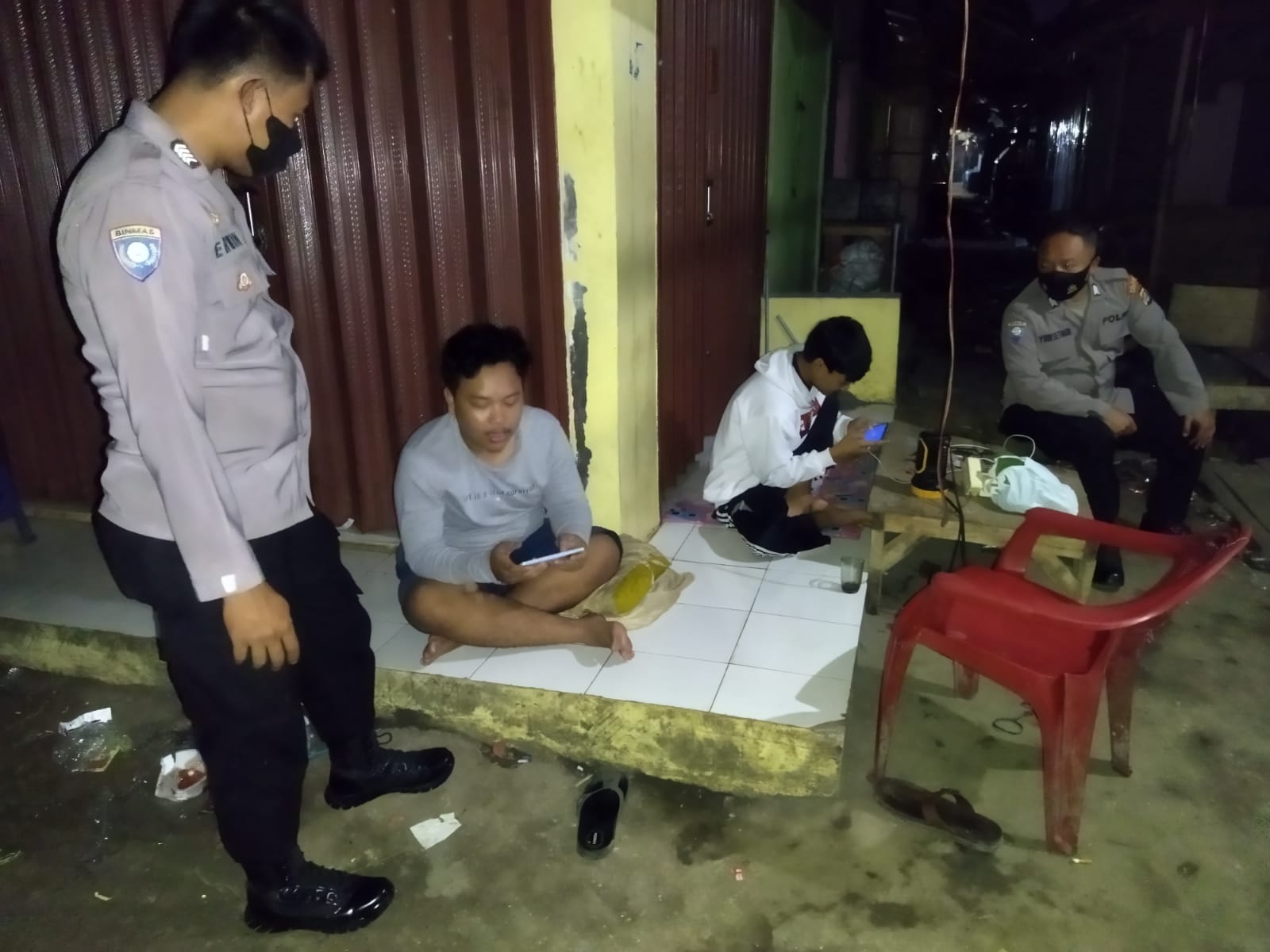 POLRESTA SERKOT | Guna mengantisipasi gangguan Kamtibmas, khususnya di malam hari, anggota Polsek Baros Polresta Serkot Polda Banten Bripka Erwin Dwi Agustian bersama anggota lainnya rutin melaksanakan patroli sambang ke masyarakat dan berikan himbauan kepada para pemuda yang masih nongkrong di malam hari, Senin (18/7/2022) malam.