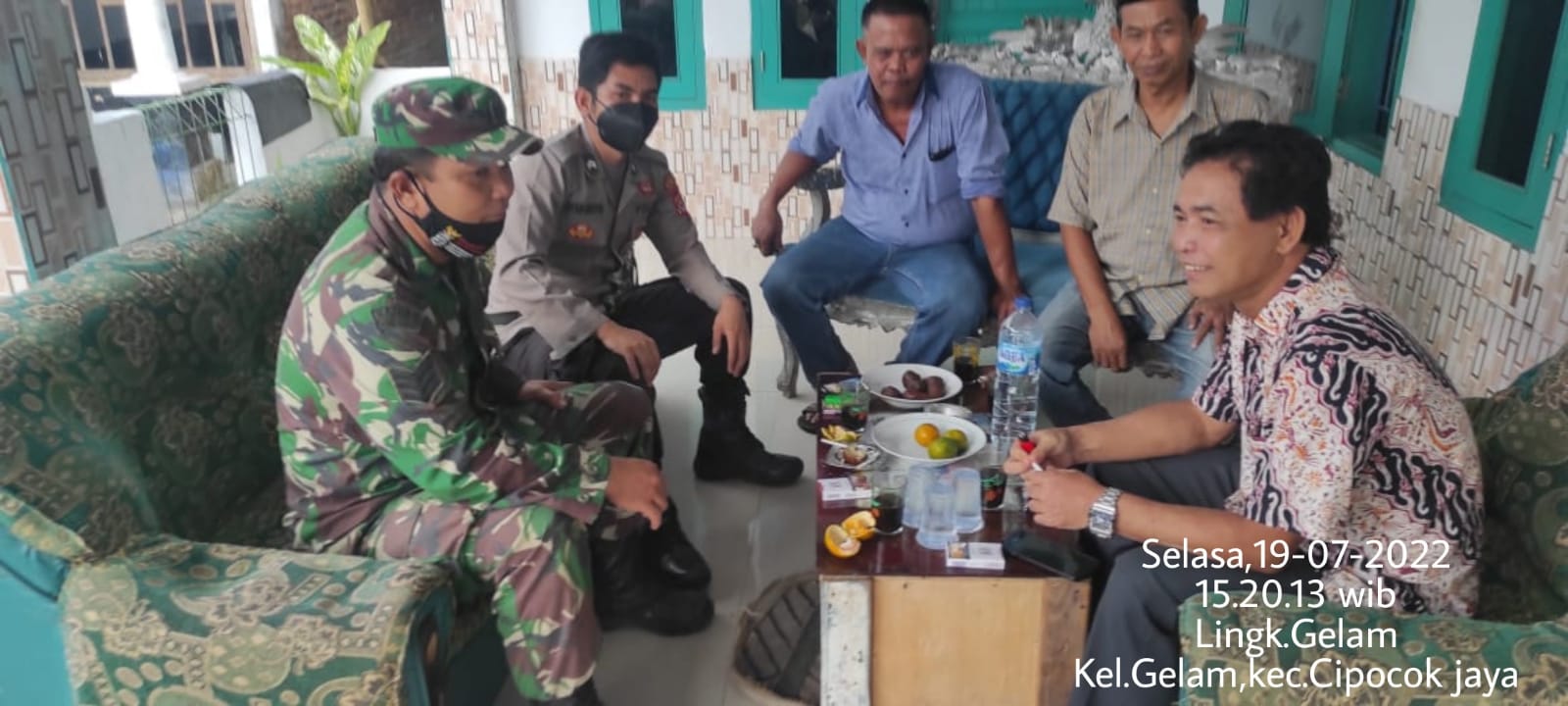 Dalam kegiatan patroli kali ini Bhabinkamtibmas polsek Cipocok Jaya Polresta Serkot Brigpol opan menyambangi Ketua Rt dan Masyarakat di Link. Gelam Kel. Gelam Kec. Cipocok Jaya menyampaikan pesan-pesan Kamtibmas seperti 3C Curat, Curas dan Curanmor serta tindak pidana lainnya,mengingatkan Kepada ketua RT agar tetap berkomunikasi dengan warga nya menjaga kondusifitas lingkungan.