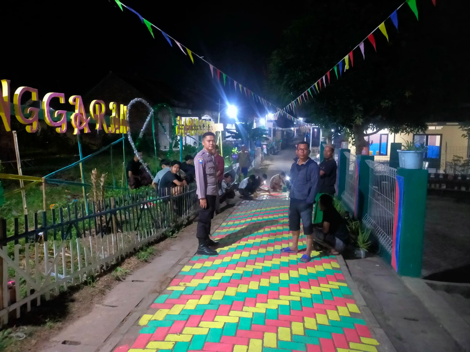 Dalam kegiatan tersebut Bhabinkamtibmas membaur bersama warga kompak gotong-royong mendirikan pos kamling.