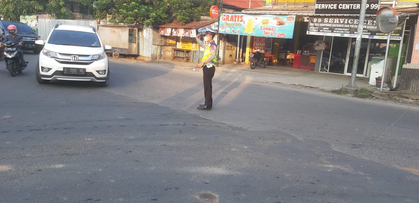 POLRESTA SERKOT- Anggota Unit Lantas Polsek Serang Polresta Serkot Kota Serang melaksanakan tugas pengaturan lalulintas serta antisipasi Kepadatan kendaraan dan kemacetan Lalulintas.