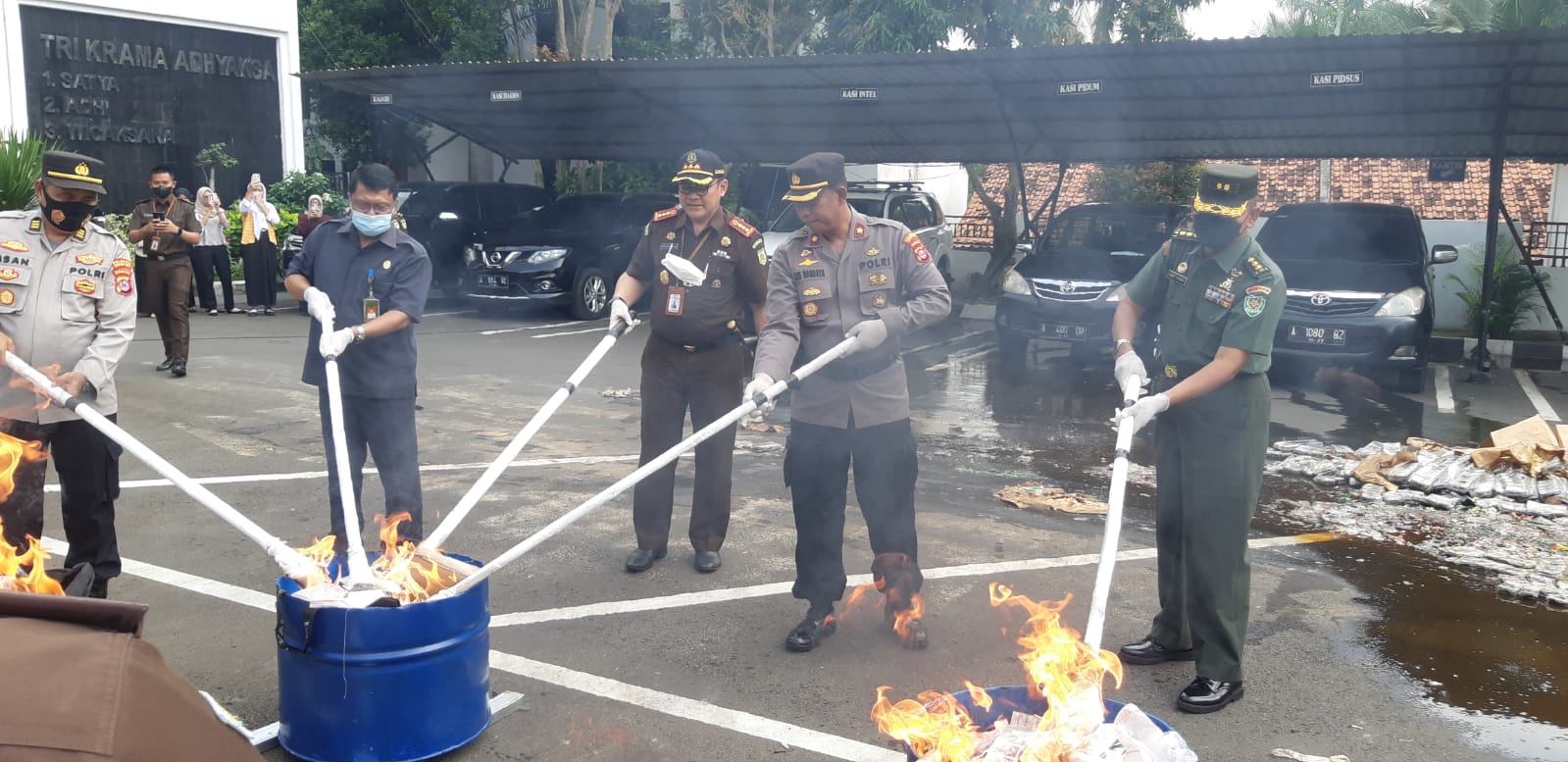Kegiatan Kapolsek Cipocok jaya Kompol.Lis Handaya,S.ST mengikuti kegiatan pemusnahan Barang bukti Berkekuatan Tetap di Halaman Kejaksaan Negeri Serang di hadiri oleh berbagai perwakilan Dari Dandim,lapas,cukai,dan Tokoh agama,Tokoh masyarakat.