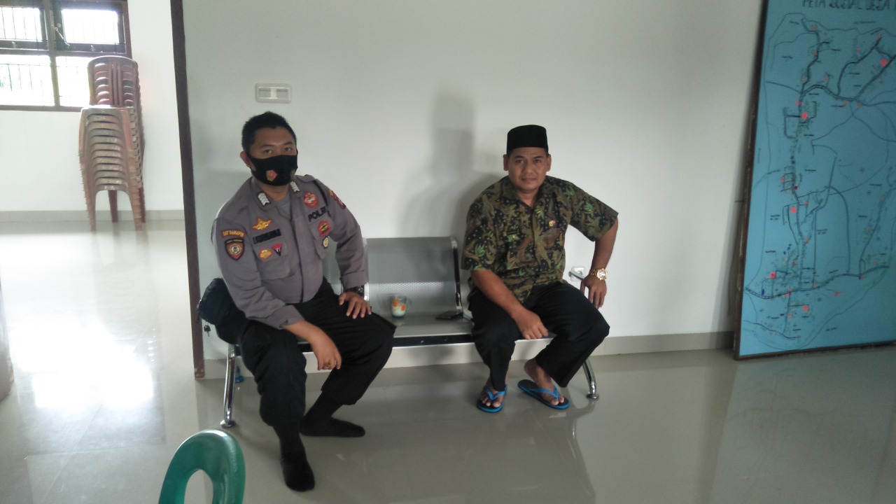 Pada kesempatan tersebut Bripka Iwan Kurniawan melaksanakan patroli dialogis sambil Berbincang santai dengan perangkat desa dan menyampaikan himbauan agar tetap menerapkan Protokol kesehatan dalam aktifitas sehari-hari demi terhindar dari Covid-19.