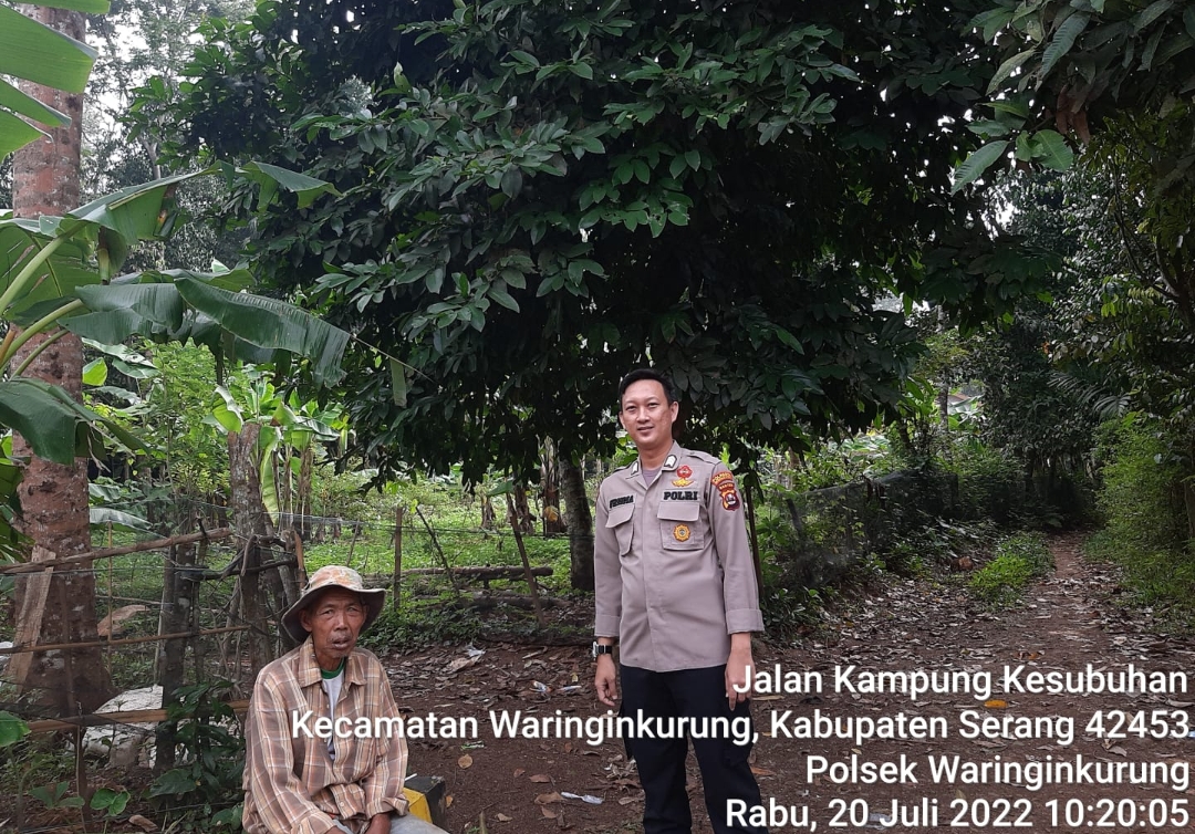 Seperti halnya Bhabinkamtibmas Desa Kemuning Brigadir Frisma menyambangi salah satu warga binaannya di Desa Kemuning Kecamatan Waringinkurung Kabupaten Serang, Rabu (20/07/2022).