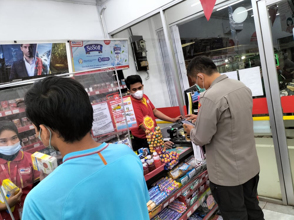Polresta Serkot | Personel Polsek Kramatwatu Polresta Serkot melaksanakan kegiatan Patroli guna memberikan rasa aman kepada masyarakat dengan sasaran minimarket Alfamart Jl. Raya Serang Cilegon Desa Serdang Kec. Kramatwatu Kab. Serang. Rabu, (20/7/2022)