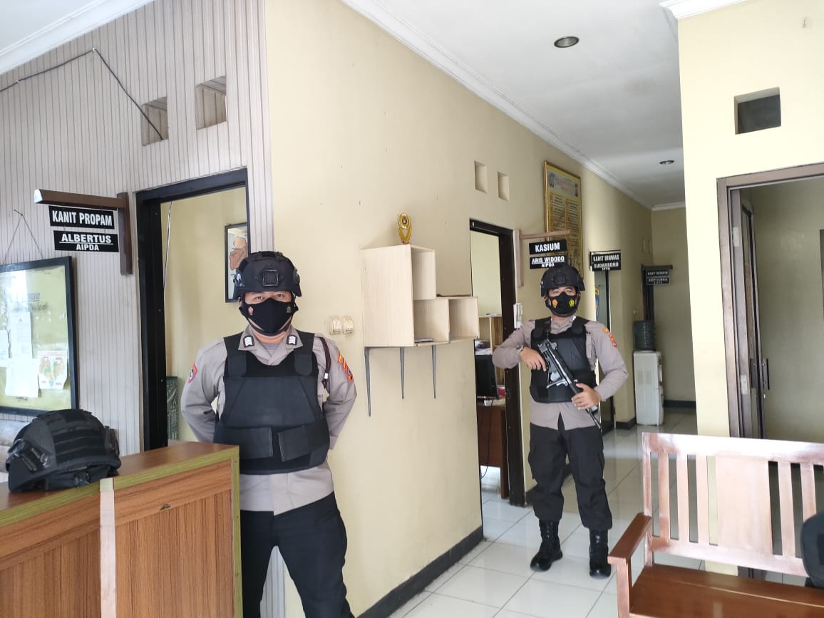 POLRESTA SERKOT | Personil Polsek Pabuaran Polresta Serkot Polda Banten Melaksanakan Sispam Mako atau Sistem Pengamanan Markas Komando di Mako Polsek Pabuaran. Kamis,(21/07/2022).